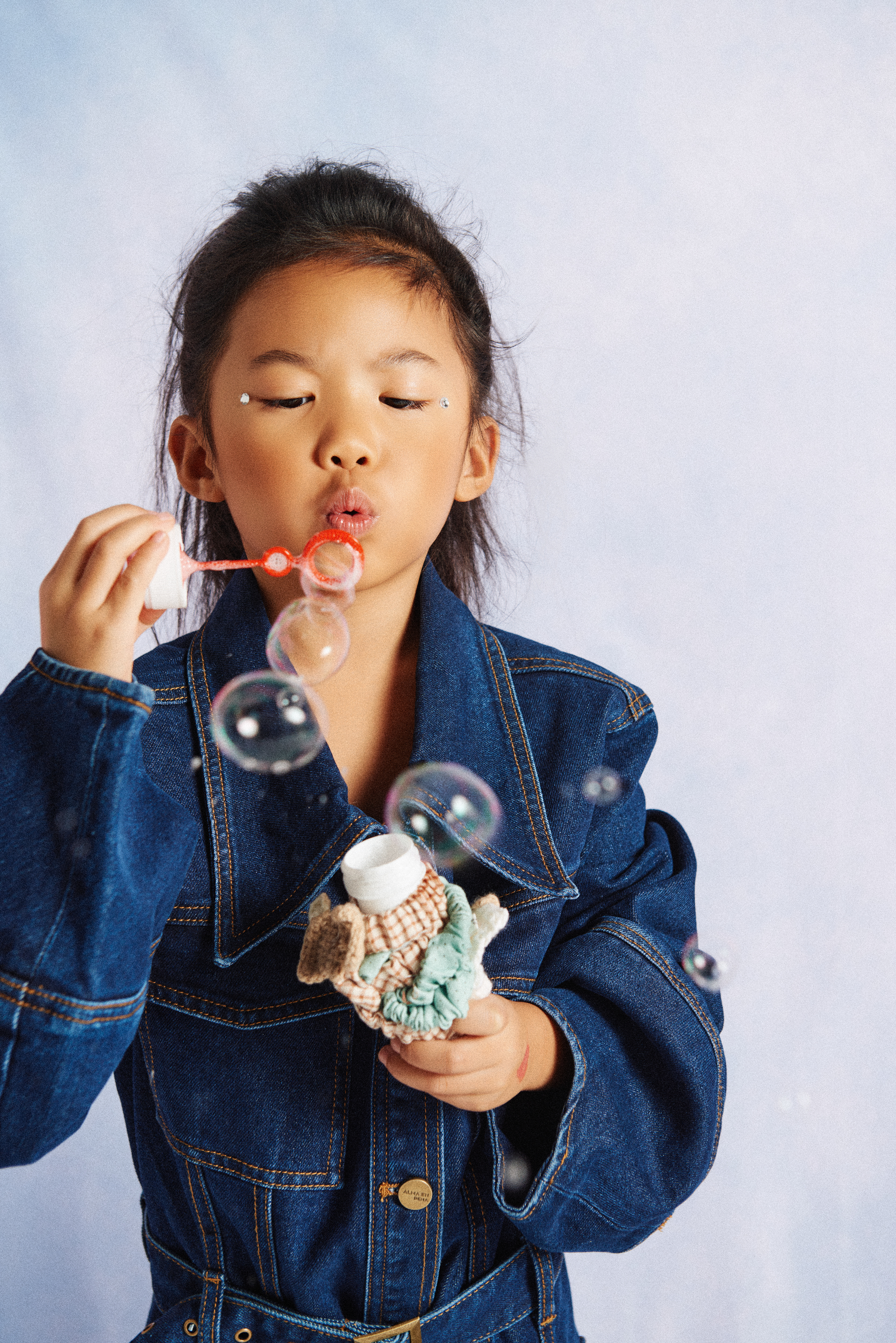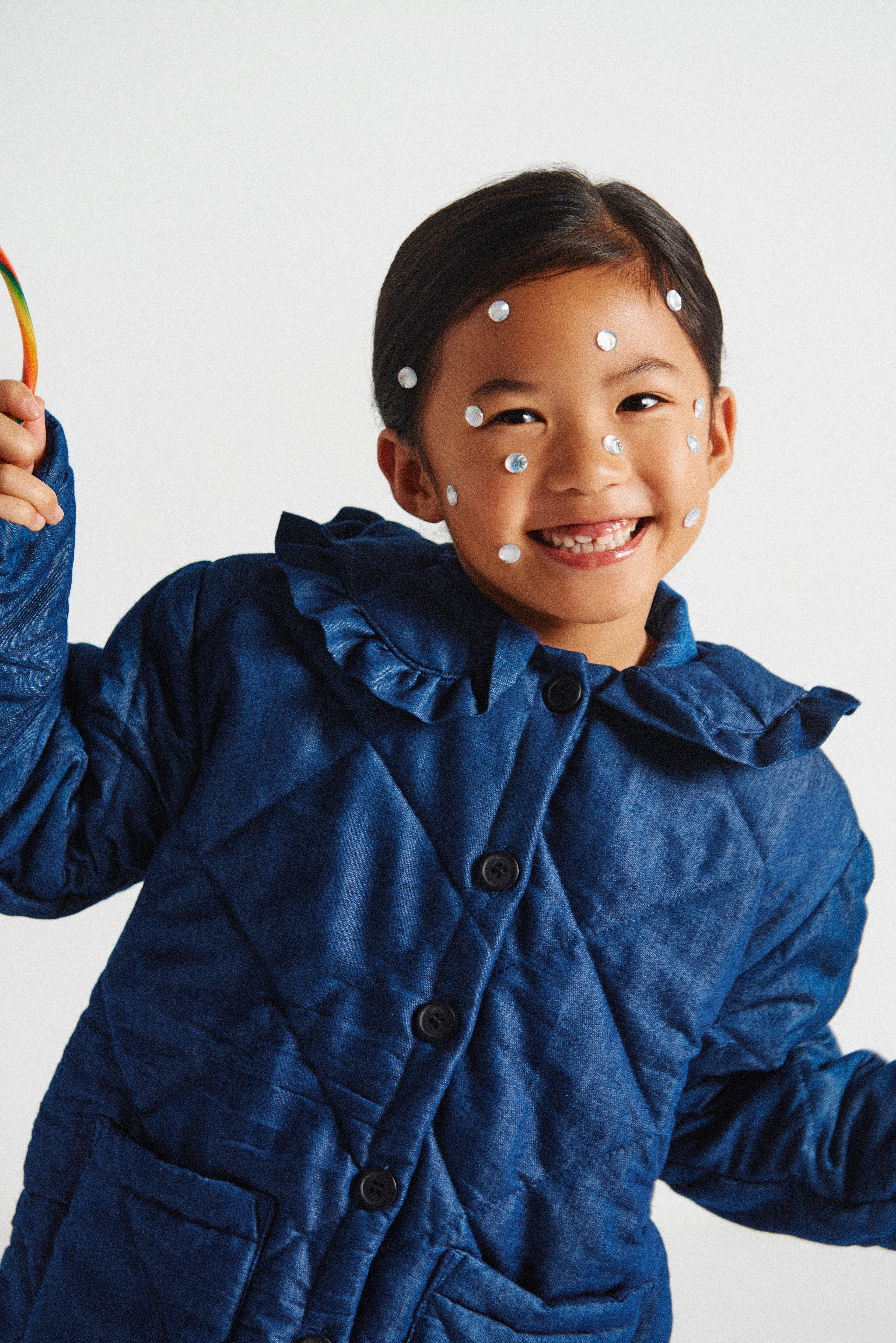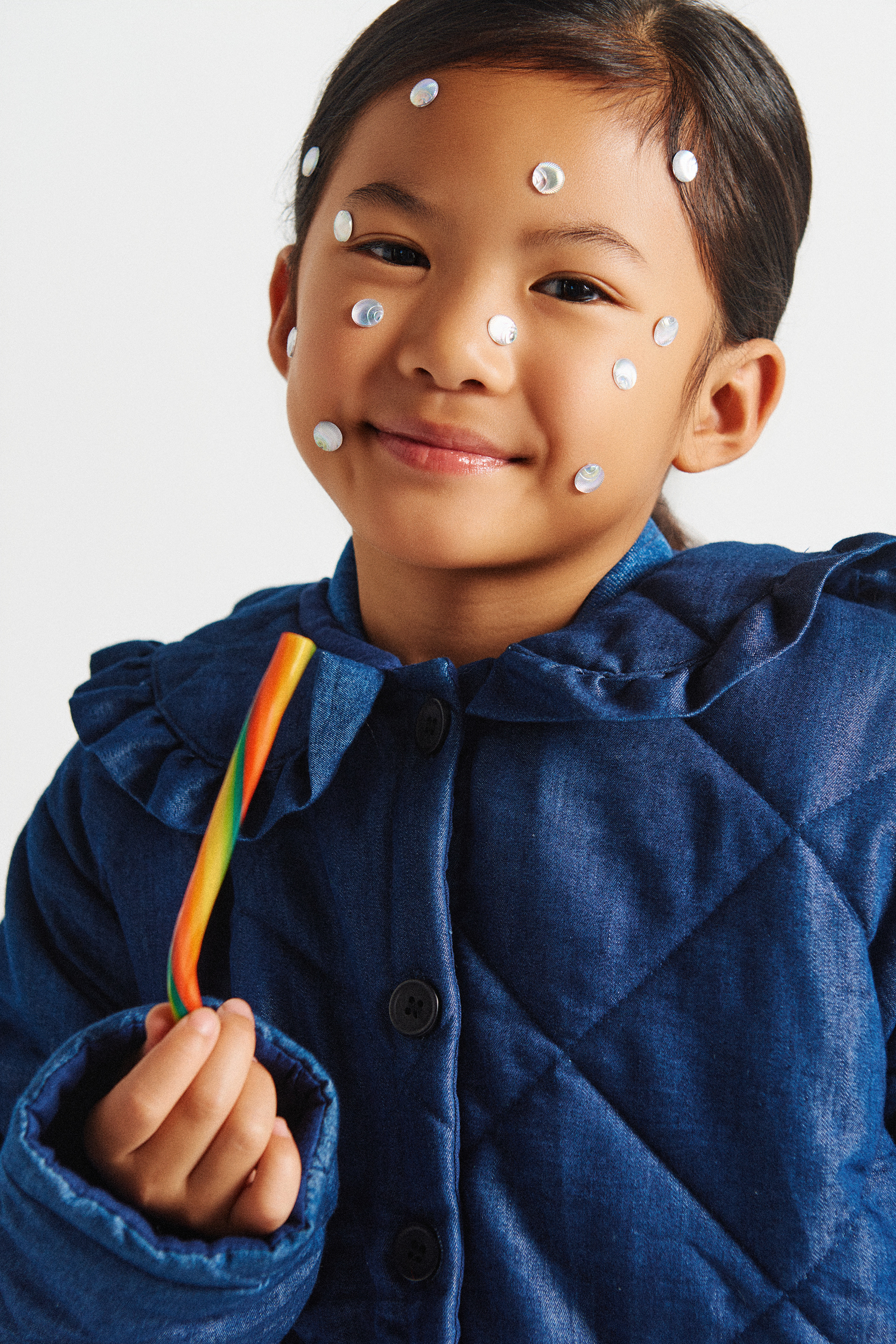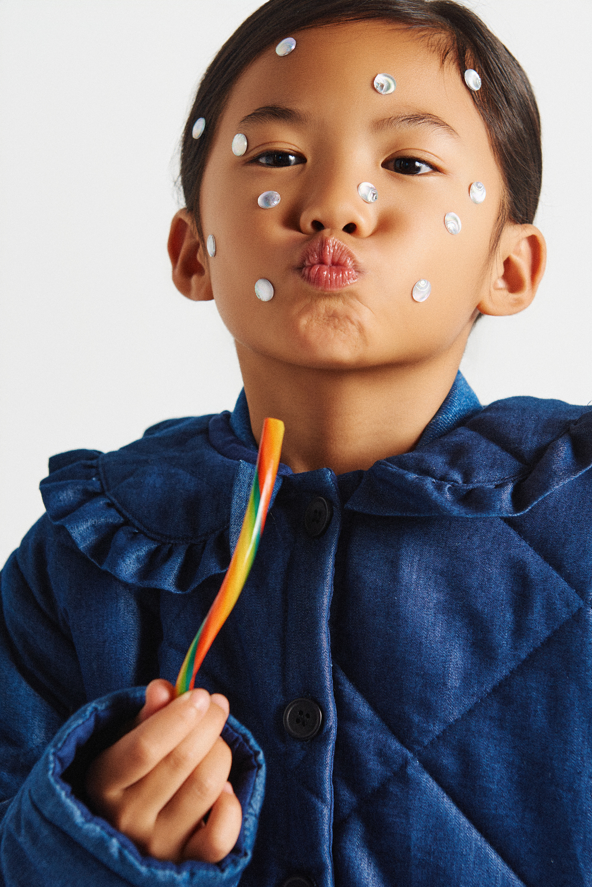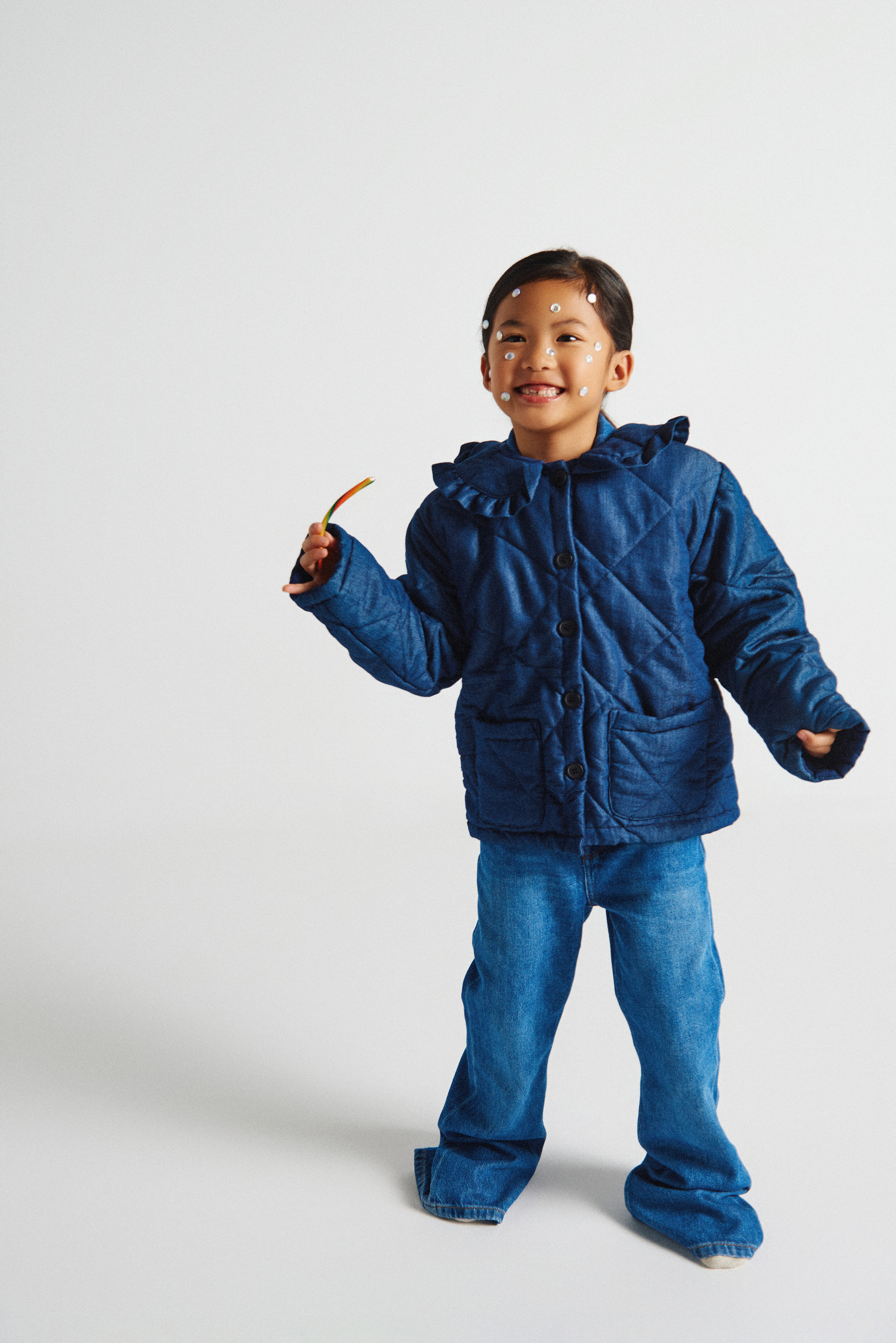 Para estas últimas fotos de beauty: Noelia con chaqueta acolchada azul índigo de Compañía Fantástica Mini @companiafantastica_mini x Kidscom Agency @kidscomagency .