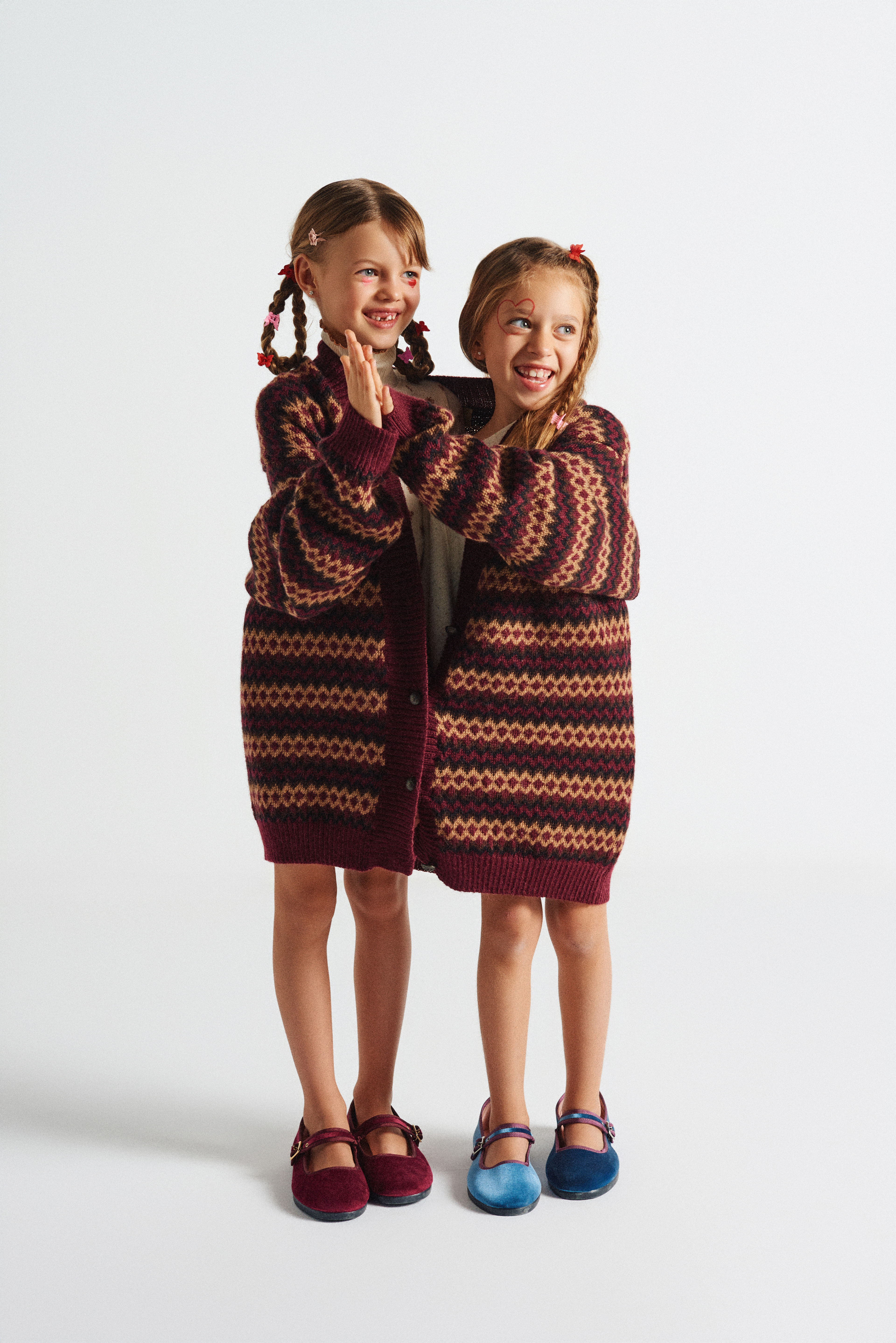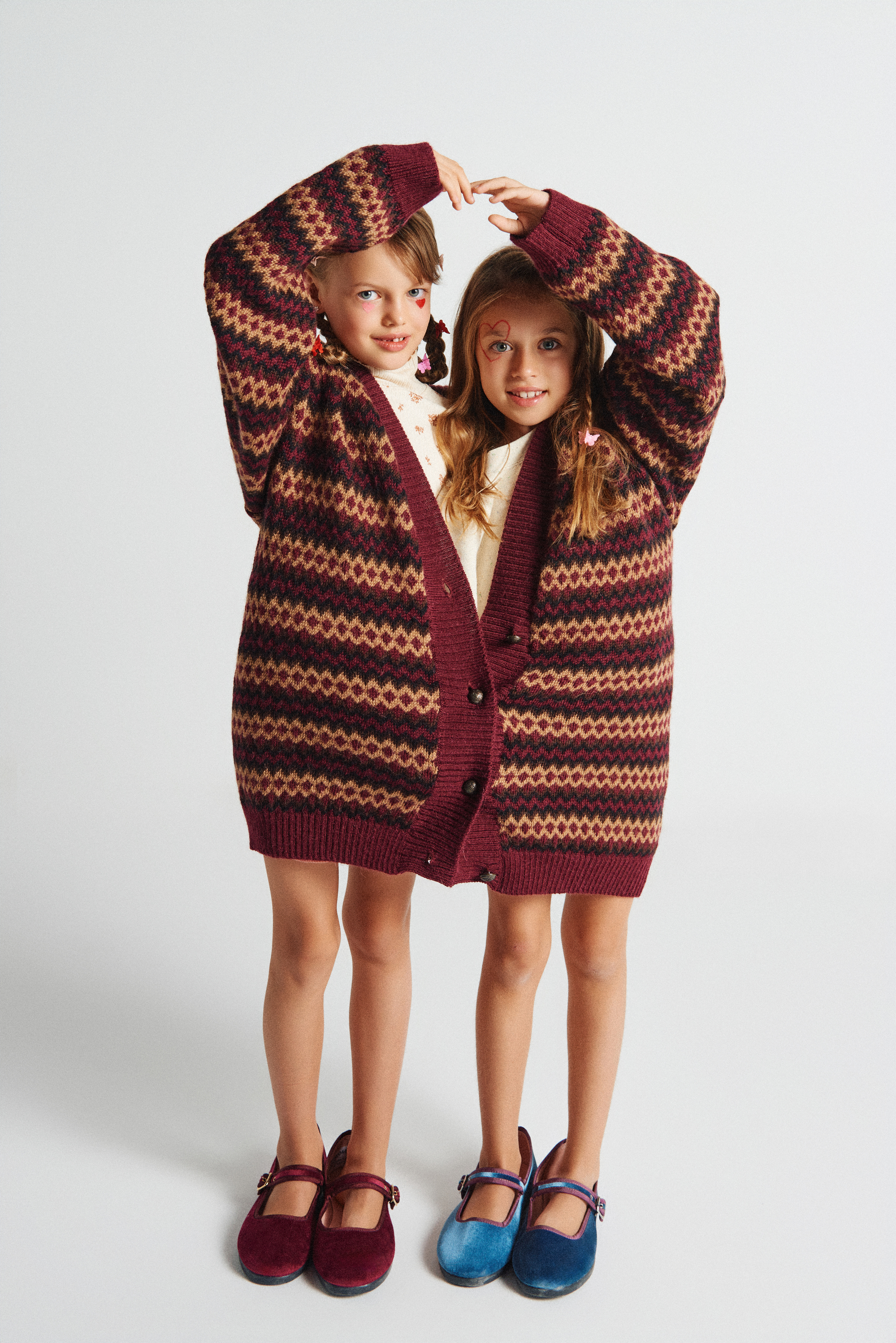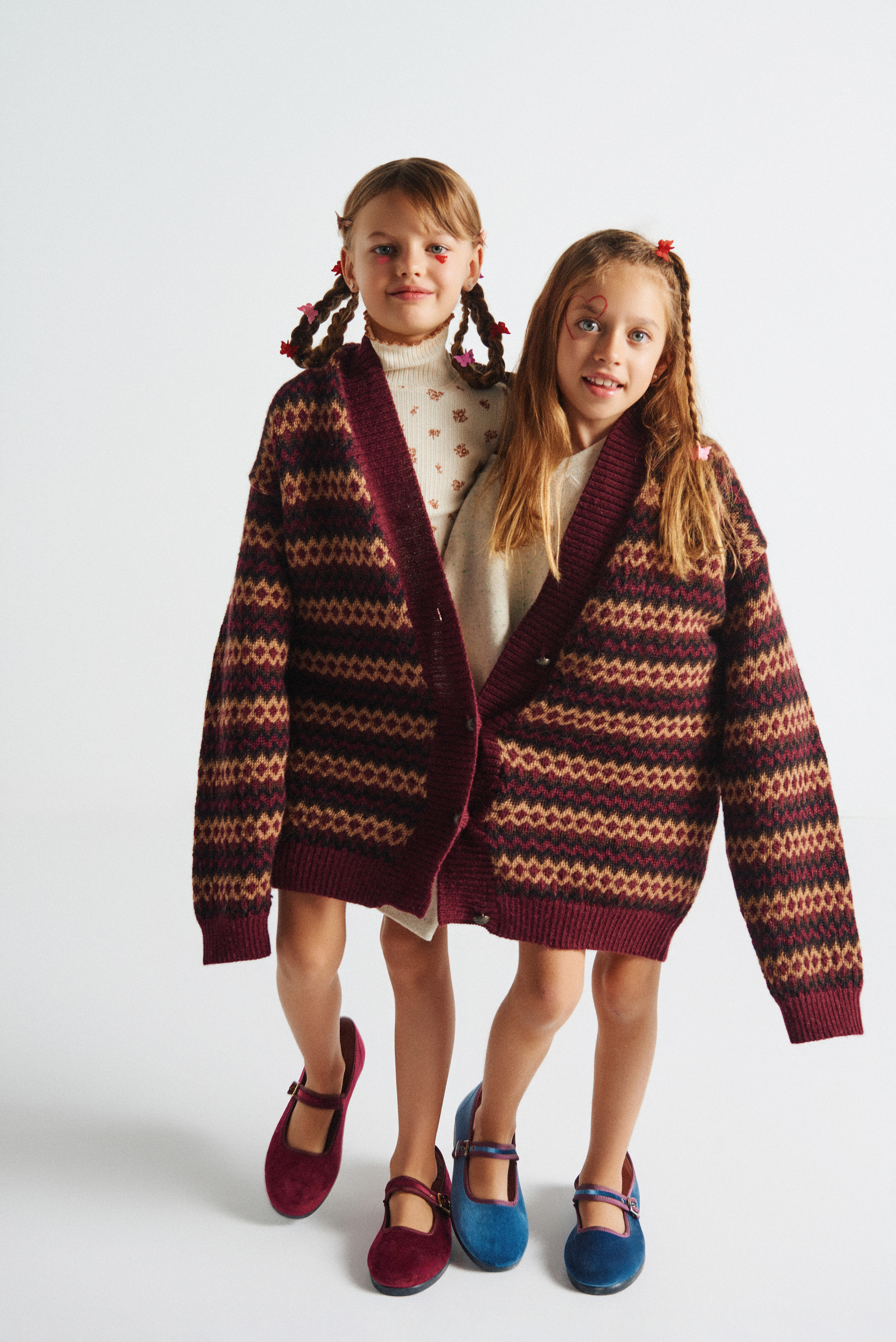 Ambas modelos comparten cárdigan de Momoni @momoni_official x Vía Comunicación @viacomunicacion y llevan merceditas Victoria @zapatillas_victoria_ x Finally Press @finallypress .